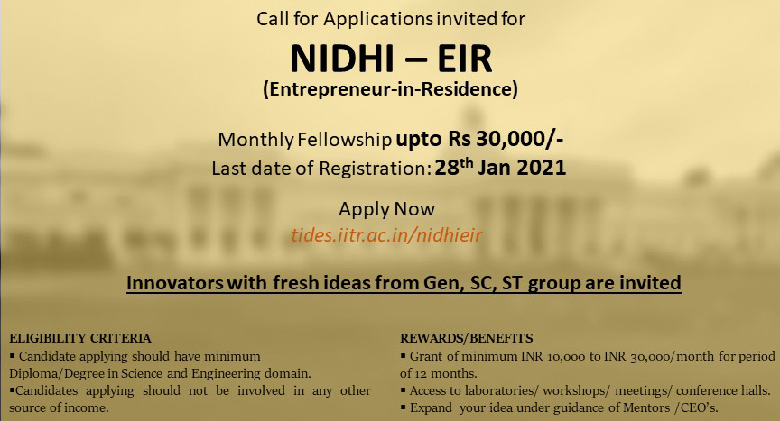 NIDHI - Entrepreneur-in-Residence Program (NIDHI-EIR)